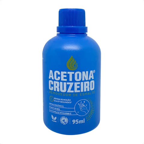 A Acetona Cruzeiro é uma solução removedora de esmaltes a base de Acetona com camomila e Vitamina E.