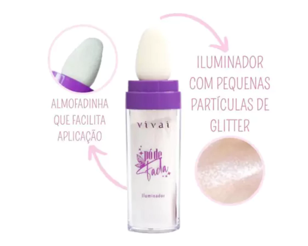 O Iluminador Pó de Fada da Vivai possui um pigmento super lindo e cintilante, é ideal pra quem gosta de brilhar MUITO! Seu formato é em pó e ele vem com uma "almofadinha" na ponta para facilitar a aplicação! SUPER fofo, né?