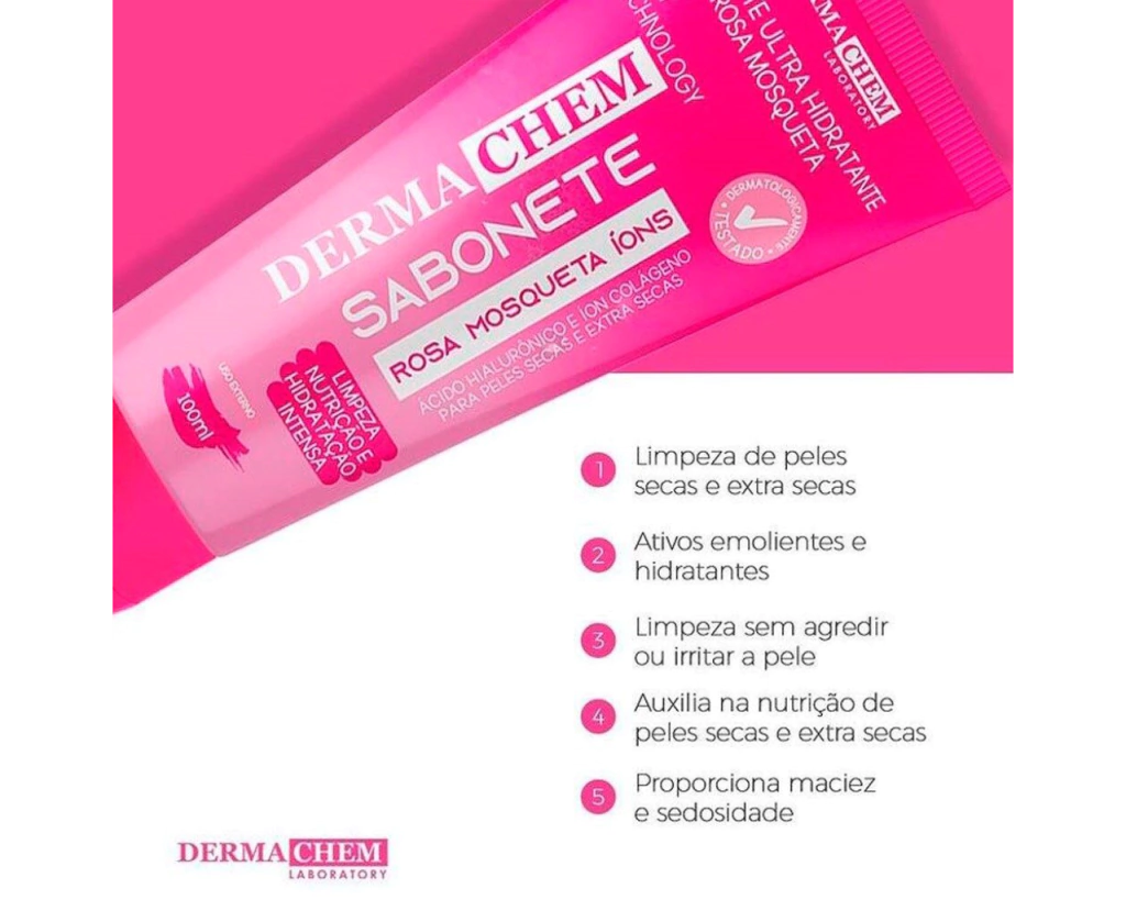 O SABONETE ROSA MOSQUETA DERMACHEM LABORATORY foi desenvolvido especialmente para limpeza de peles secas e extrassecas pois é um tipo de pele que requer mais cuidado.