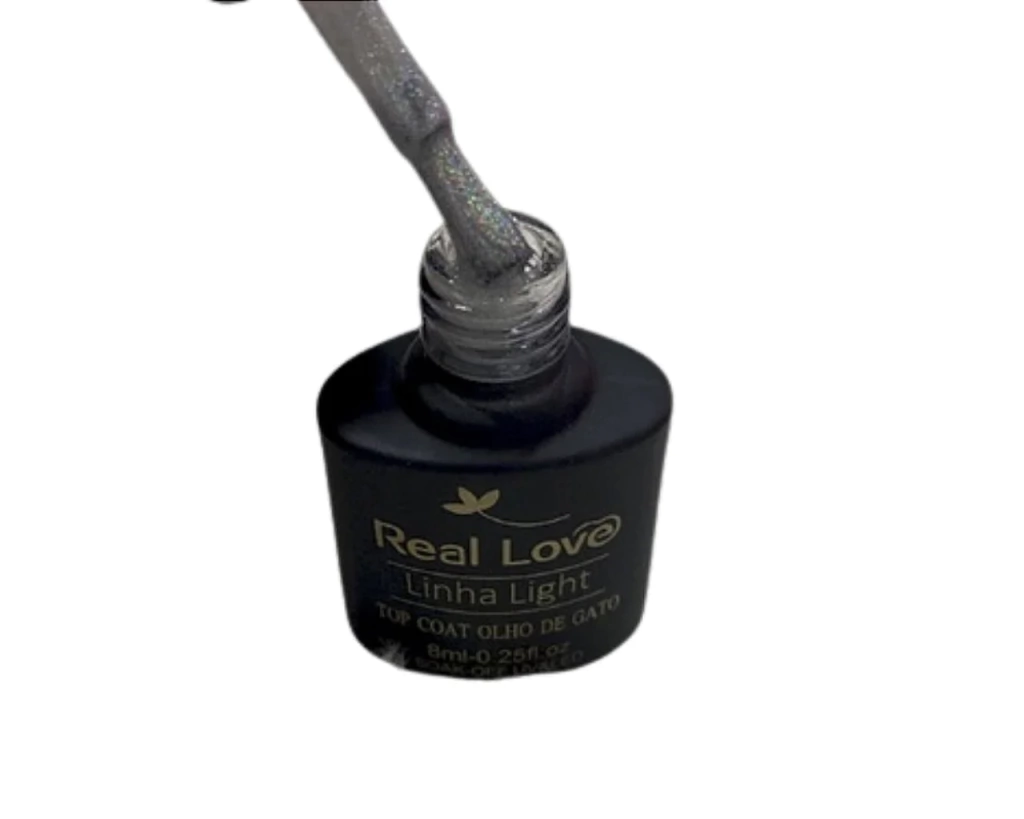 Top Coat Olho De Gato Linha Light - Real Love O novo top coat da Real Love: queridinho da nail's designer, com o processo de metais que desenham conforme o imã utilizado. Trazendo extra brilho e secagem rápida. Sistema ja conhecido no mundo inteiro, recem chegado no Brasil. Modo de usar: após a esmaltação da unha em gel, aplicar o top coat Real Love, e, utilizar o imã de sua preferencia para obter o resultado além do esperado, secar na cabine e pronto. - Alto brilho e durabilidade. - Secagem rápida. - Alta cobertura e precisão na aplicação doTOP COAT. Contém: 1 Top coat olho de gato